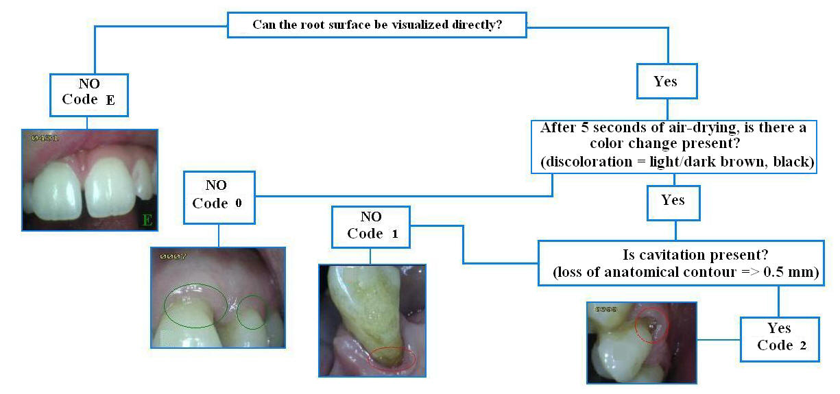 The following diagram (Figure 1) will serve as a useful prompt for examiners in deciding on appropriate coding of root caries: