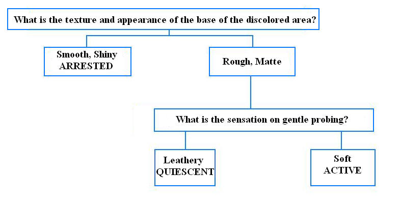 The following diagram (Figure 3) will be helpful in making a determination regarding the activity of root caries: