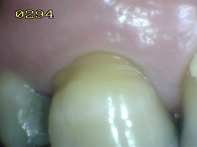 - Una superficie de la raíz adyacente a un borde de la corona que
