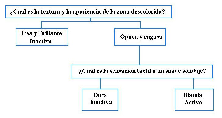 actividad de la lesión a través de los estadíos de caries radicular