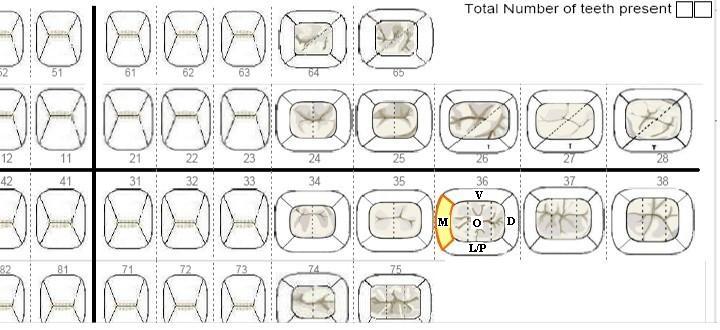 Examine las caras de la pieza dental 36 en este orden: