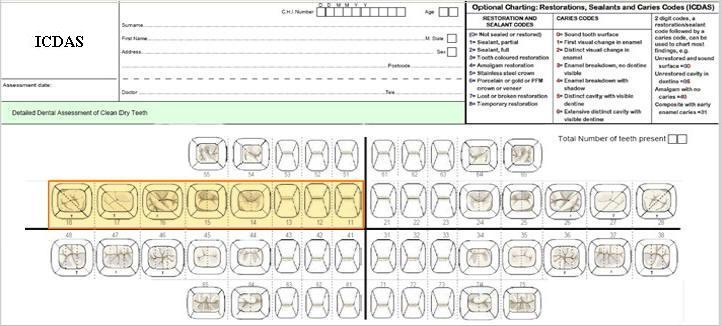Usted utiliza el código ICDAS de la siguiente manera. El primer dígito corresponde al