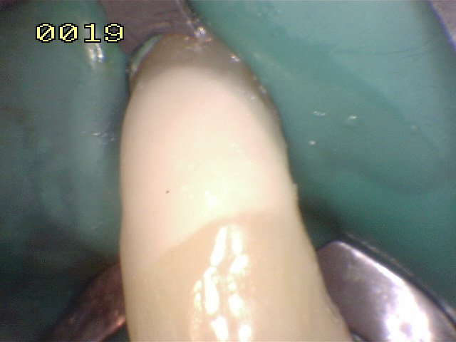 clamp cervical. se utiliza dique de goma oscura para mantener un
