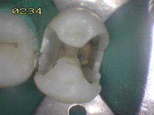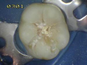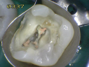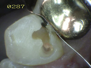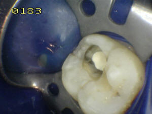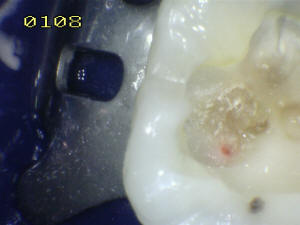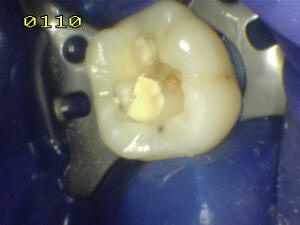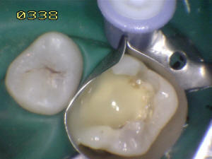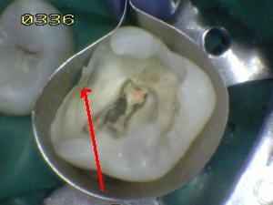 En mesial se ha eliminado toda la caries, se lava con
