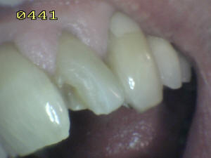 y en distal caries recurrente, con fractura del ángulo.