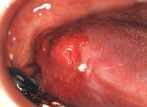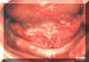 Ésta es una lesión más sospechosa por estar en el piso de boca. Estas lesiones, compuesta de áreas "rojas"  y " blancas” (lesiones manchadas), son generalmente asintomáticas.