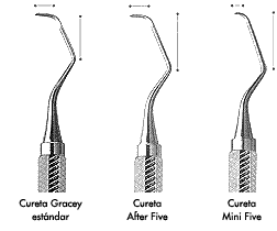 de la hoja de una cureta standard. Este tipo de curetas son diseñadas
