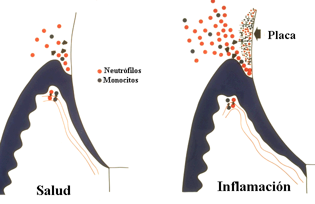 y las reacciones inmunes de la gingiva y el periodonto resulta en