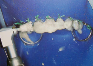- Limpieza con brochita profiláctica a baja velocidad, con polvo