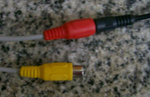 Aquí se muestran el adaptador de Video/Tv/LCD en color amarillo y el adaptador de alimentación eléctrica en rojo con su respectivo transformador electrónico.