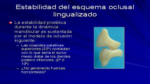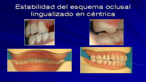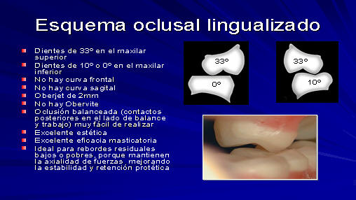 con esquema oclusal lingualizado es la axialidad de fuerzas, para no desestabilizar la prótesis en el sentido