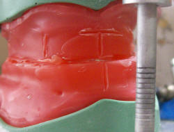 cúspides palatinas, concuerdan con la cresta alveolar, utilizamos una plantilla de acetato con su