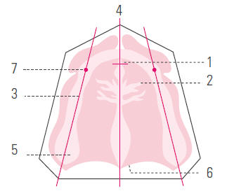 de las cúspides palatinas en céntrica. |