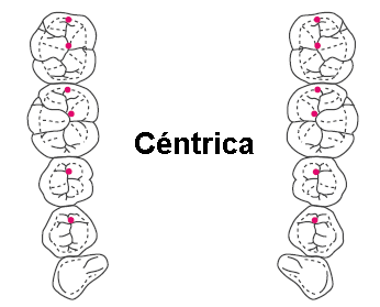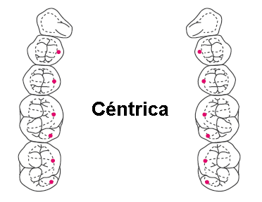 céntrica solo las cúspides palatinas de la prótesis superior,