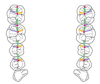 enfilan los premolares y el molar. La línea debe pasar por el surco