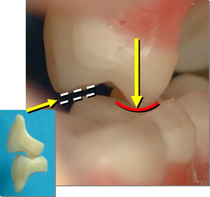 contactos sobre las inclinaciones interiores de cúspides