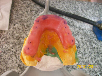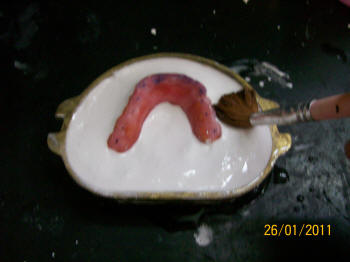 Se deja enfriar y se le aplica con pincel varias capas de separador a base de alginato ( Filmogen®)