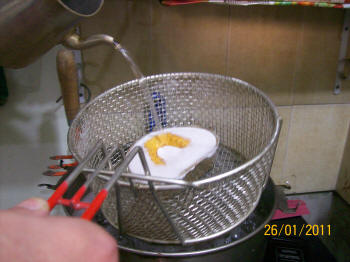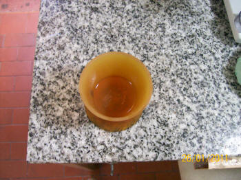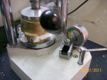Se prensa nuevamente y se lo coloca en una brida bien ajustada para iniciar el proceso de baño maría. A una temperatura inicial de 20ºC hasta legar a los 65ºC durante una hora y luego otra hora a temperatura de ebullición (99º C)