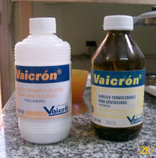 Se vierte 10 ml de monómero termo y se satura con el polvo. Luego se empaca cuando adquiere la consistencia plástica.
