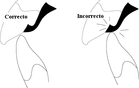 Una vez tallado nuestro apoyo debemos verificar que el ángulo sea menor a 90º con respecto al reborde marginal. Para ello el explorador es una herramienta adecuada, cuando se utiliza como se indica en el gráfico inferior.