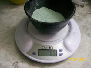 encima, y se le agrega el polvo hasta llegar a los 100 gramos. |