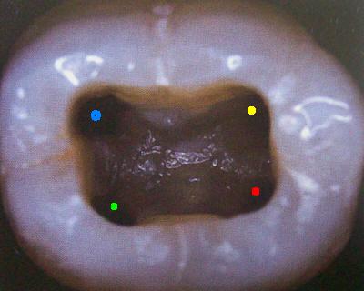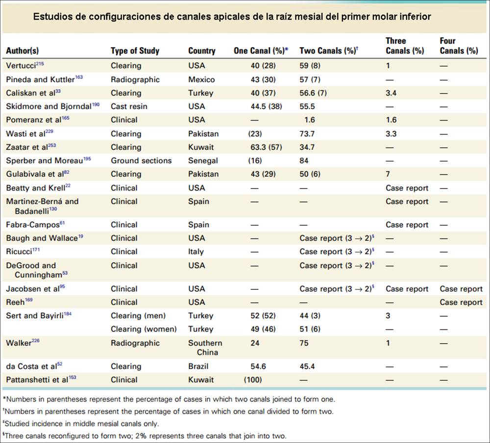 Cuarto conducto en molares inferiores (Color amarillo) |