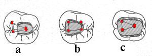 accidentales de la cara vestibular (a) piso de de cámara pulpar del molar