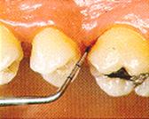 Debe usarse una fuerza suave para determinar la profundidad de la bolsa y para detectar la presencia de cálculo subgingival. Esta presión no debe ser mayor de 20 gramos. La sonda se introduce entre el diente y la encía, lo más paralelamente posible a la superficie de la raíz. La profundidad del surco gingivodentario se determina observando el código de color o marca, al nivel del margen gingival. El extremo de la sonda debe mantener el contacto con la superficie de la raíz.
