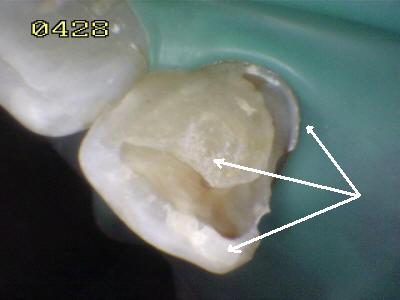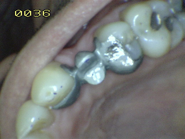 amalgama cubierta por el diseño del puuente; observe los restos
