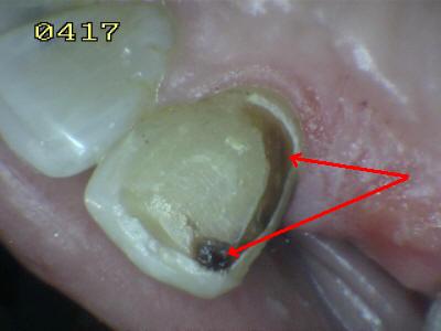 por caries en la interfase diente cemento de resina.