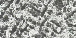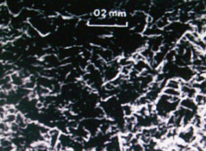 • Grabado electrolítico de una aleación de niquel cromo,  magnificada a 625 aumentos por el microscopio de barrido electrónico (SEM )