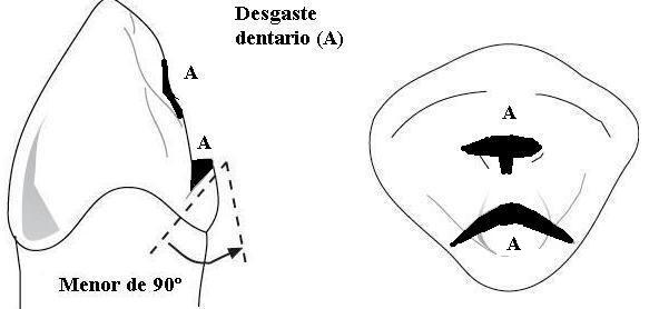 desgaste en el sentido ocluso-gingival de al menos un tercio de la
