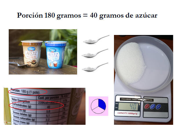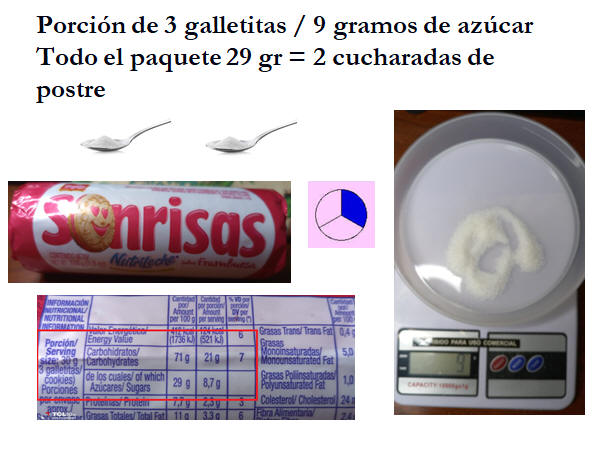 Alimentos no saludables con alto contendo de azucar.